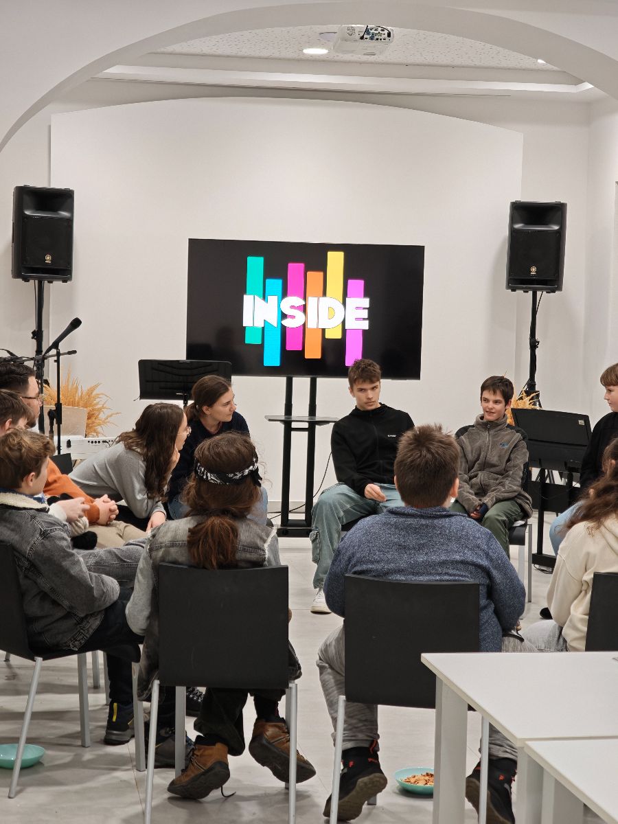 Je piatok a v našej zborovke sa schádzajú trnavskí dorastenci. A aha, pripájajú sa aj kamaráti z Piešťan. O malú chvíľu sú tu aj mladí z INSIDE, ktorí priniesli do Trnavy energiu a nádych sviežej evanjelizácie. Znejú chvály, povzbudenie z Božieho Slova k účasti v spoločenstve a vládne príjemná atmosféra. Je výnimočné, že mladí kresťania sa spoja a prídu venovať svoj čas a energiu mladším... Vďaka Pánu Bohu za túto službu. Nech On požehná všetky ďalšie podobné aktivity.